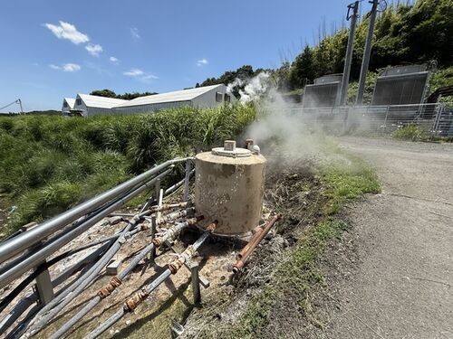 指宿のとある田舎道沿い。 前方に、もうもうと立ち上がる湯気が見えてきました。 しかも、車の中にいても「シューッ!ボコボコッ!」という音がはっきりと聞こえる。 特にバリケードなどもなく、普通に接近できてしまう。 いやこれ、ちょっと危ないでしょ? …