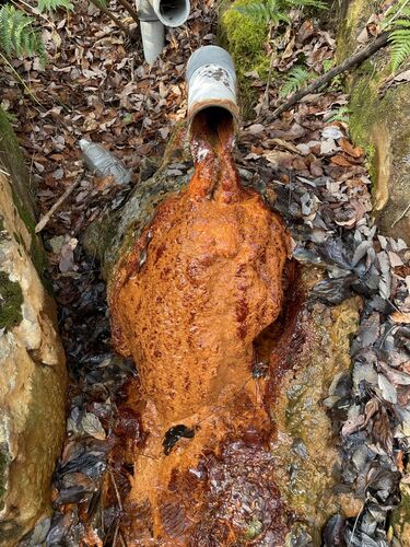 ここは「大昔に鉱泉が湧いてたはず、今も湧いてたらラッキー」くらいの情報しかないとこ。 周囲は、なーんにもない山の中。 なのに、川の対岸を見ると、一部だけ古そうな石の擁壁がある。 怪しいな。 ん? あれは鉄系の鉱泉だな。 土管から垂れ流されていま…