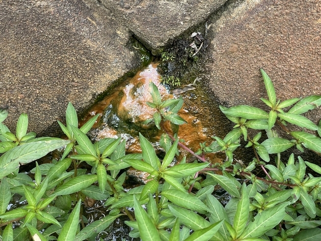 2024-04-13 ⭐️石川県金沢市 K鉱泉跡かな? 石川 【施設跡】 ⭐️ 金沢市内に昔あったというK鉱泉。 多分この辺だと思うんだけどなぁ。 おっと、流しがある。 五感で調べた感じ、鉱泉ではなさそう。 道を進んでいくと、あれ? 側溝に金気がある。 流れの袂を辿ると、この配管から染み出している。 うーん、これ? なんかキタナいな。 周囲の擁壁からも金気が極少量漏れてる。 擁壁の逆側の大きな配管からも金気。 うーん、これかな・・・? 塩類泉らしいのですが、これを試飲する勇気はなかったですw