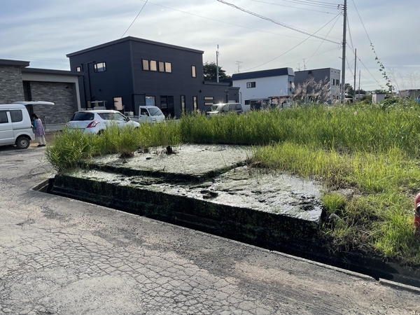 その一区画は更地でして、草ボーボーですが、一部分だけコンクリートの基礎みたいなのが残っており、ウェッティーな状態です。