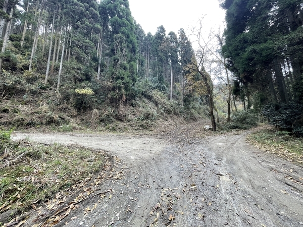 砂利道を車で進んでいき、ここからは徒歩です。
