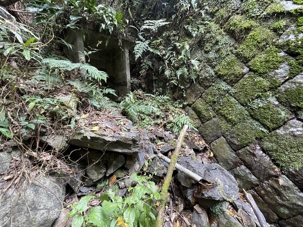 金気をたどると、右岸の上の方に祠が。